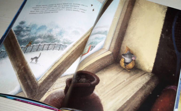 Для младшей взяла совершенно волшебную, на мой взгляд, кгнигу о мышке И.Зартайской. История получилась теплой, светлой, с подтверждением того, что чудо существует. И еще мне очень понравилось - что те места, которые мышка посетила во дворе, можно обнаружить на последнем развороте, т.е. пространство в иллюстрациях едино. Люблю, когда книги так детально проработаны художником ))