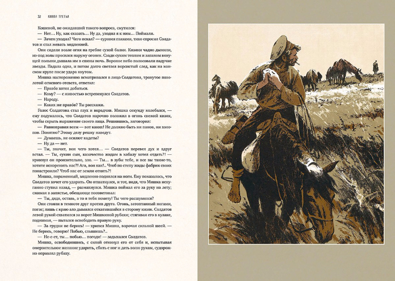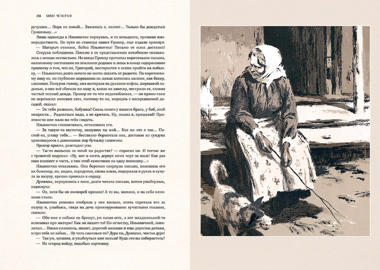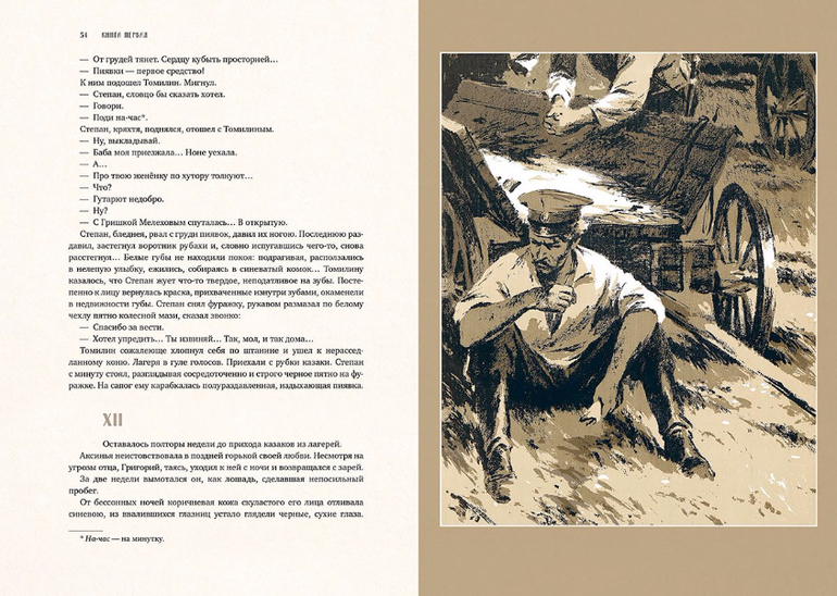 В графичных иллюстрациях Ивана Кускова, созданных художником с вниманием к деталям, мастерски воплощены такие разные образы героев романа и дух прошедших времён.