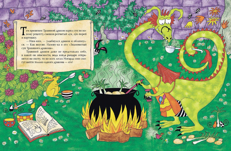 Все драконы в лесу Ногарда обожают грабить замки и есть их жителей. Но только не Травяной дракон: он ухаживает за своим огородом, дружит с девочкой, и варит самые лучшие супы. Из овощей, конечно же, ведь Травяной дракон не ест мяса. Некоторые его даже за настоящего дракона не считают!