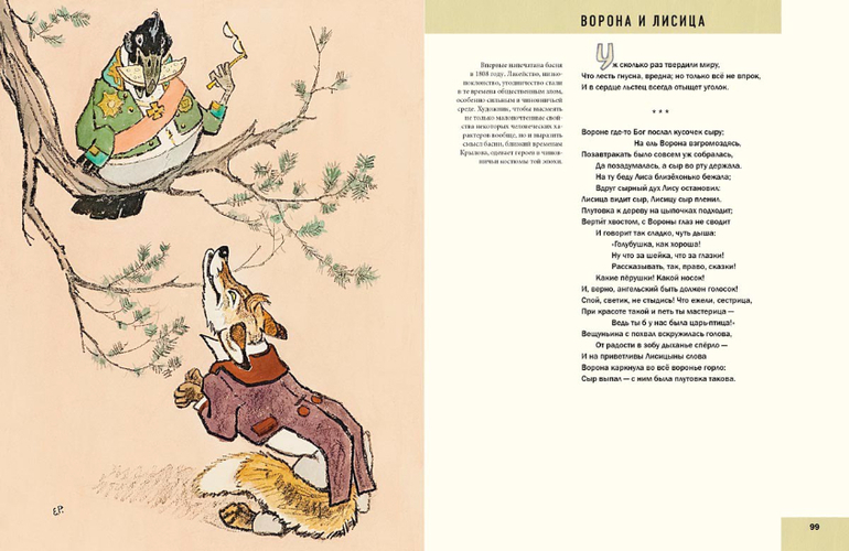 2) Рисунки Евгения Рачева. В баснях животные олицетворяют людей, их характеры, их поступки. Кому, как не Евгению Рачеву, который так прекрасно умел очеловечивать зверей в сказках, и делать тогда иллюстрации к басням?