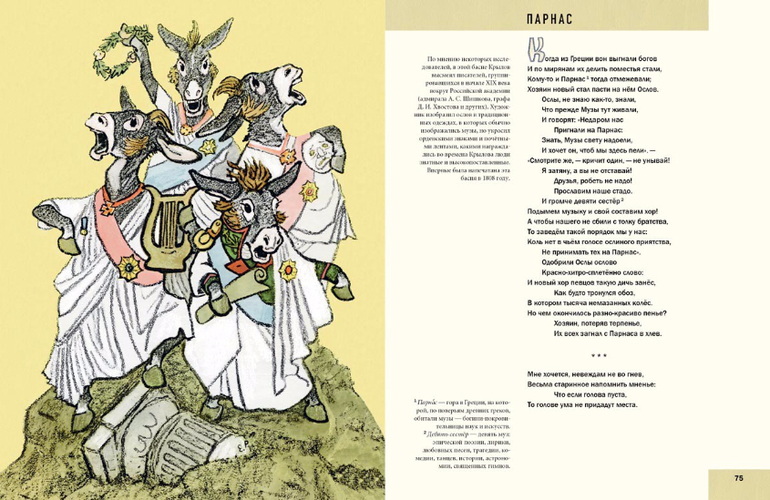 1) Это большой сборник басен, а не только избранное. Всего в книге 92 басни. Есть и все популярные "Ворона и лисица", "Стрекоза и Муравей", "Квартет"... Есть и редкие: "Листы и Корни", "Мирская сходка", "Крестьяне и Река", "Рыбья пляска" и т.д.