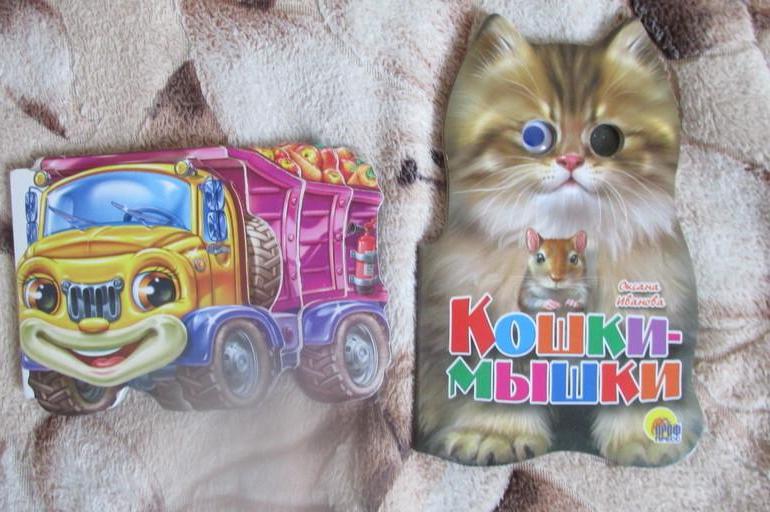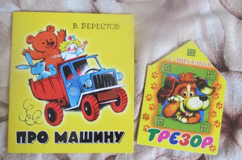 Книжки-игрушки - в виде кошки с нескладным стишком и в виде грузовичка, там стишок более-менее приличный. Не хиты, конечно, но тоже перечитываются