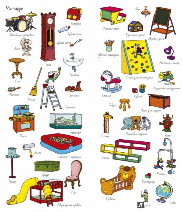 Откройте книжку-панораму и пройдитесь по этажам большого уютного дома! Что хранится в гараже, что происходит в саду и во дворе, чем заняты домочадцы?