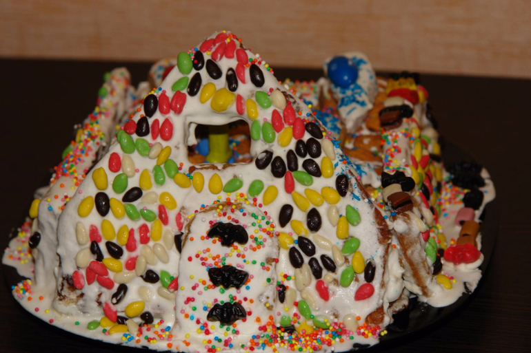 Не, тортик был на один из Росиных ДР) Просто так к месту пришелся) Да и вспоминали тут пряничные домики!