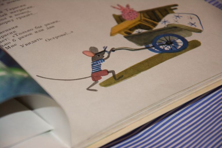 Тарасика поем! Вместе с Никитиными! Неопределившийся мышонок, которого влекут подвиги! Мальчишка, что с него взять... Тянет его по реке в дынной корке) Дынную корку тянет на дно, Тарасика домой, а потом опять к приключениям... Так и живет Тарасик)