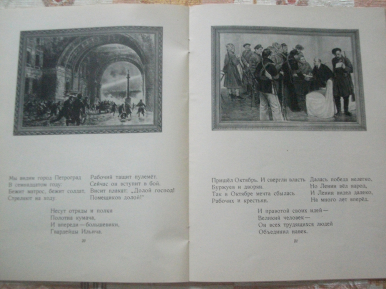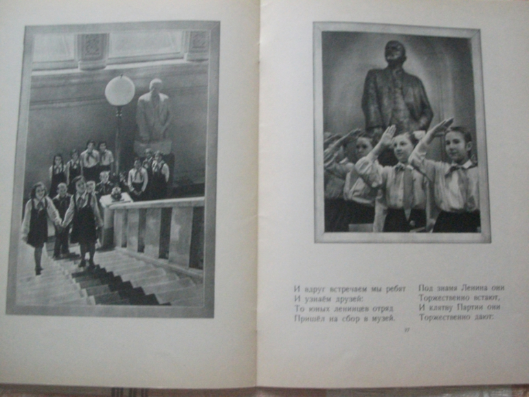 У меня есть такие книги) и про Смольный, и про Ленина. Одна подписана. Дарили в школе при переходе из начальной в среднюю. В пионеры принимали в музее Ленина, помню включали аудиозапись с его речью. На нас это тогда произвело огромное впечатление. Стихи наизусть не помню, а клятву помню)