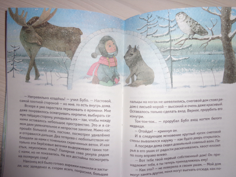 Ну и напоследок Совиный волк Книга оказалась неожиданного маленького размера (я думала, она побольше). Страницы офсет, слегка просвечивают, но не страшно. Блоки прошиты и проклеены, каптала нет. Иллюстрации то на каждом развороте, то 2-3 разворота просто текста. Книга выпущена при поддержке Автономной некоммерческой организации "Центр "Амурский тигр"" и Русского географического общества.