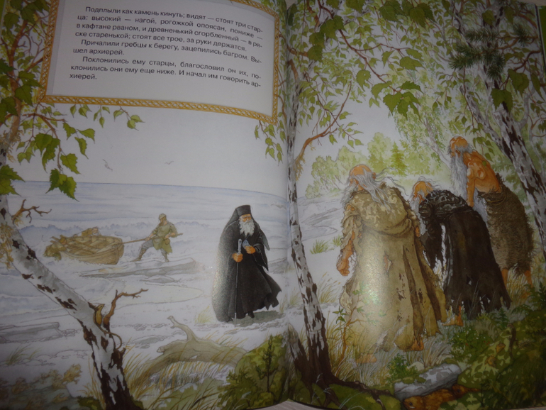 Три старца давно хотела, но вот продается она не везде, да и скидками на нее магазины не балуют. Однако ж не утерпела - купила! Очень большой формат, отличное качество бумаги, иллюстрации Доминика Гребнера - отдельная песня! Так тонко и тщательно прорисованы детали, а его передача солнечных бликов и тенистой листвы деревьев завораживает...