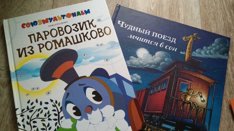 Не знаю, чем дочке так полюбился Паровозик из Ромашкова, наверное обилием звукоподражаний, все эти тик-так, бом-бом и чух-чух ребенка просто завораживают, одинаково любит и книгу и одноименный мультфильм.