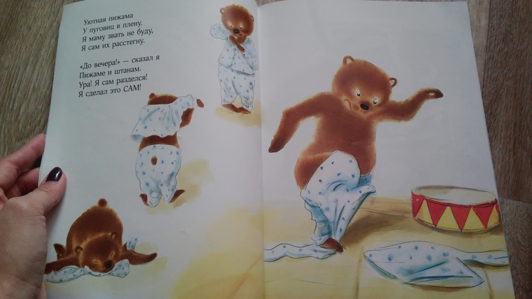 Эту бюджетную книжечку схватила в местном книжном из-за милых медведей на обложке- и не пожалела. Неплохое стихотворение Сергея Махотина, очень милые иллюстрации- и моя младшенькая теперь все желает делать 'тама'.
