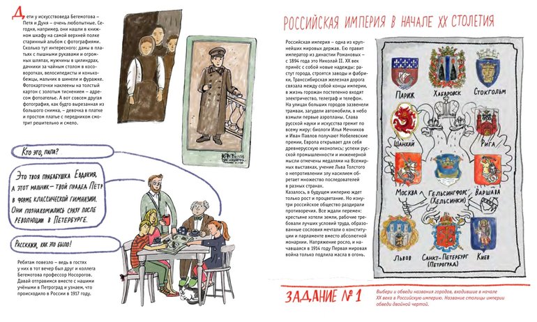 Комментарии на полях рассказывают о важных исторических событиях и о повседневной жизни в России начала ХХ века, о реформах календаря и орфографии, о том, чем же все-таки Дед Мороз провинился перед Советской властью и о многом-многом другом. Многочисленные клапаны и подвижные элементы, разнообразные объемные конструкции и открытки в подарок помогают передать обаяние ушедшей эпохи, увидеть ее своими глазами.