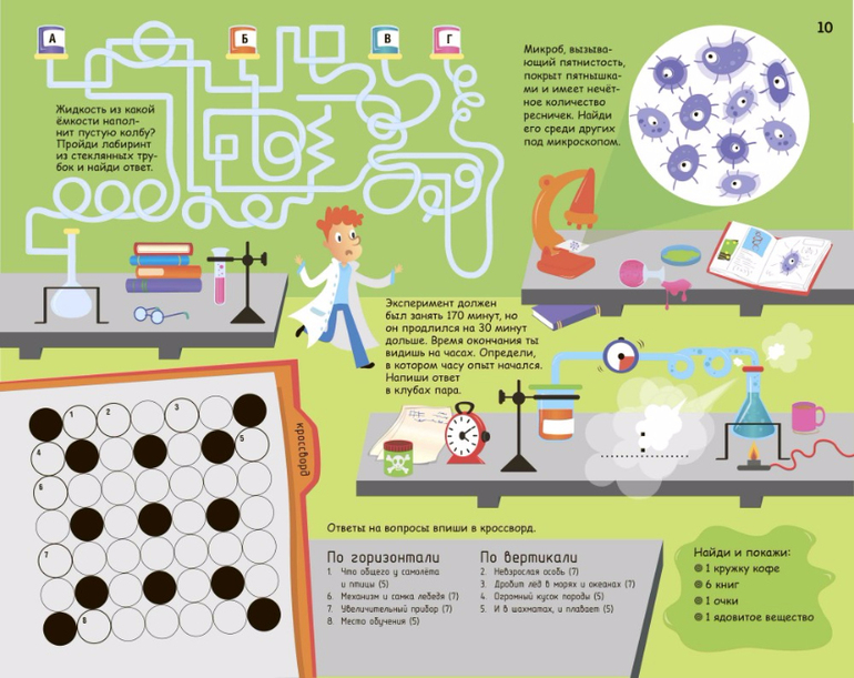 В этой большой книге головоломок ты найдешь 30 отрывных листов с логическими, числовыми и графическими задачками, кроссвордами и другими активити-играми.
