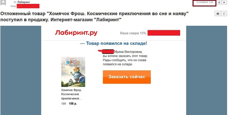 Мне тоже сегодня такое письмо пришло, но я уже остыла к книге, но ради интереса посмотрела.
