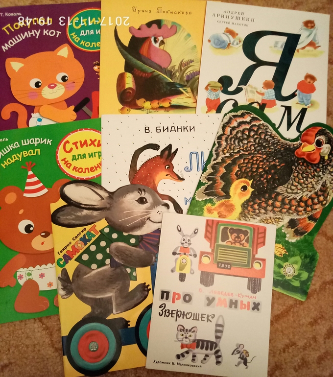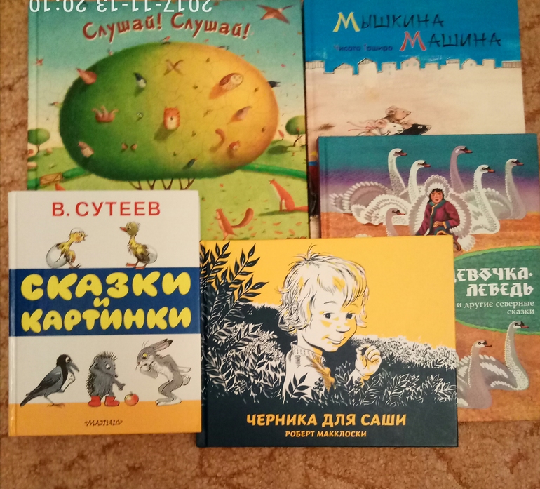 Сутеева любим кто сказал мяу, капризная кошка. В девочке лебедь читаем только пропавшую песенку, но очень очень любим) Мышкина машина тоже хороша) взяли в библиотеке первую часть,про дом.Овечка и волк тоже наш хит!Про овечку и Хармса 12 поваров показывала тут.