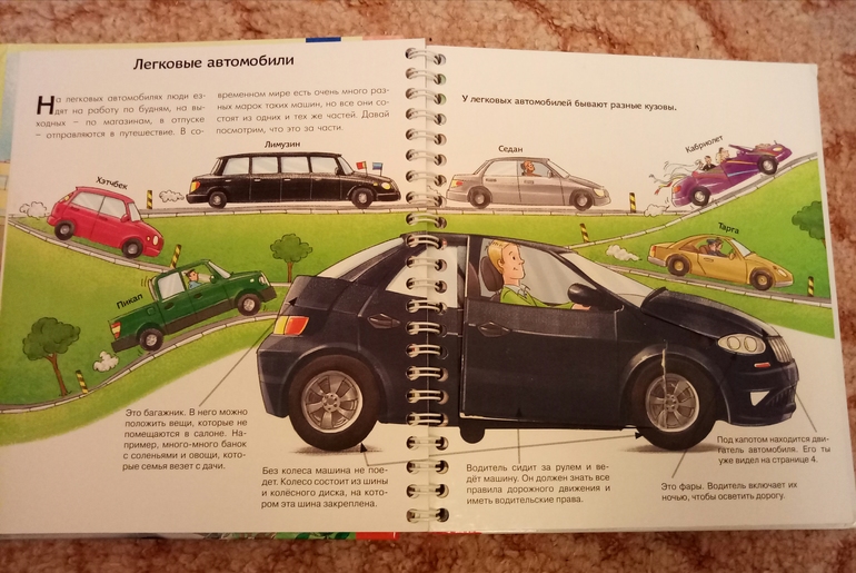 Такие разные автомобили от АСТ это моя боль, пока просто листали, открывали, было все нормально, но папа имел глупость прочитать текст, и ребенок потом требовал ЭТО читать.. это жуть, честно.. текст корявый , я плевалась, переделывала как могла..