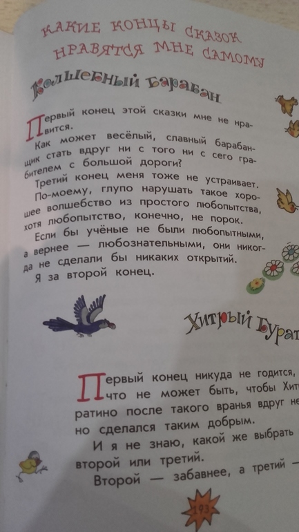 У нас мало сказок, сын пока к ним не проникся. Купила на пробу необычные сказки, у каждой из них несколько разных концов, что позволяет ребенку выбрать самому концовку, проанализировать ее и обсудить. Также есть рассуждения самого автора, какая концовка нравится ему) отпишусь потом в дневнике о впечатлениях.