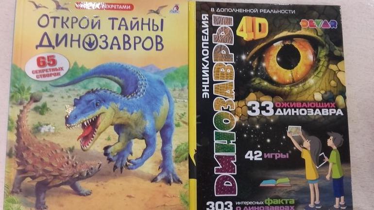 Не обошлось без динозавров, мы без них никуда))) Открой тайны всем известная серия, ребенку очень нравится. А вот вторую надо читать с планшетом, на каждом листе оживает динозавр, которого можно покормить, узнать как он пусть и где живет. Отличная книга для любителей динозавров и для знакомства с ними.