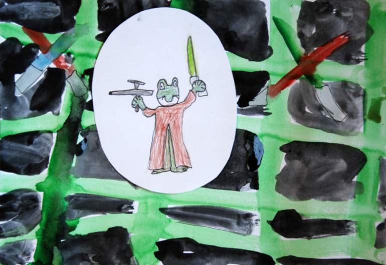 Даня увлёкся и нарисовал еще Фроша-ниндзя и Фроша-джедая.