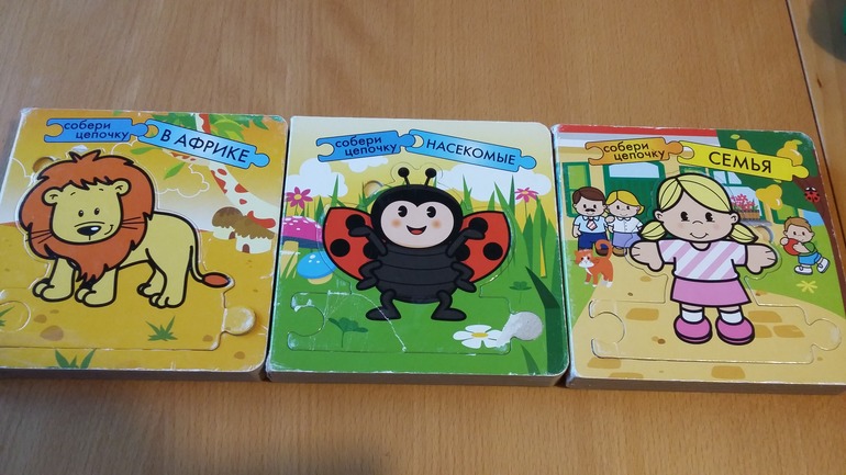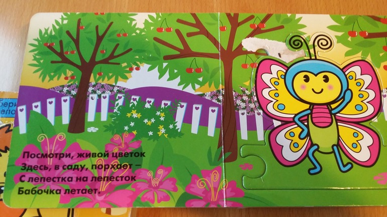 Есть замечателтная серия картонных книжек-пазлов для малышей у Мозаика-синтез в которую мы любим играть уже давно.
