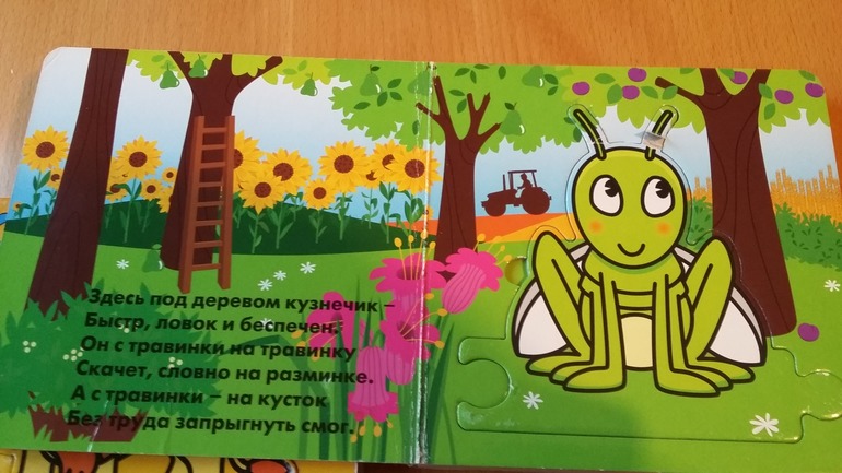 Вот кузнечик - вынимаем и ребенок может им и поиграть и попрыгать.