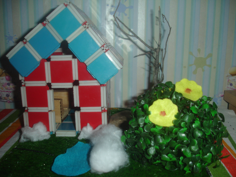 Домик стоял долго, потом Саня его разобрал. Этой осенью попросил снова собрать. Но поляну уже не отдал. Теперь там Тилимилитрямдия. И живёт эта Тилимилитрямдия у нас уже вторую неделю.
