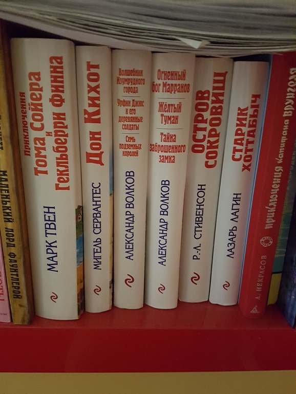 Волшебник изумрудного города прочитали и Урфин Джюса, потом остановились сказали дальше рано. Старик Хоттабыч, остров сокровищ, приключения капитана Врунгеля, Дон Кихот, Питер Пен, Баранкин будь человеком, Мэри попинс думаю ещё рано. Карлсон одна часть осталась не прочитана и мы все из Бюллерблю (прочитан не весь сборник) не хочет читать. Сам читает сейчас Тайна деда Мороза.