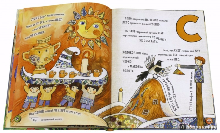 Книга продолжает серию азбук художницы Дарьи Герасимовой. На этот раз буквы превращаются в русские народные загадки. Все разгадки прячутся на страницах, осталось только отыскать их под личинами диковинных существ. Разгадывать загадки не просто веселое занятие. Подлинная народная поэзия, ее образность и ритм - вот что очаровывает читателя, заставляя его искать неожиданные свойства в знакомых предметах и удивляться наблюдательности и остроумию русского народа.