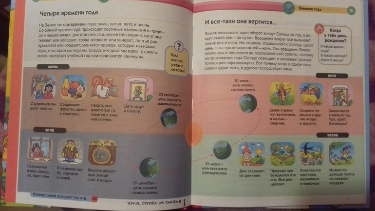 Необычная познавательная книжка про времена года. С интересными фактами, заданиями, рисунками и фотографиями за 120.