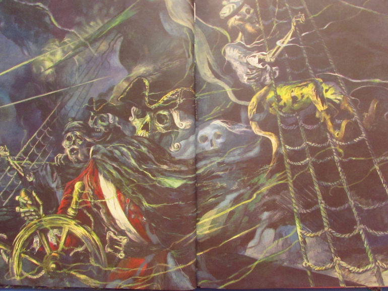 Но иногда вечером или днем в густой туман он появляется. С разорванными парусами и скелетами на борту.