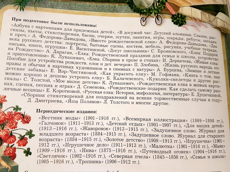 Тут представлены рассказы и стихи популярных на тот момент авторов (Чарская, Лев Толстой, Федоров-Давыдов и другие). На страницах книги огромное множество материалов из газет вековой давности. Список используемой литературы и источников впечатлил : музеи, библиотеки, десятки периодических изданий типа "Светлячок" (1902-1916 гг.) или "Северная пчела" (1845-1850 гг) и т. д.