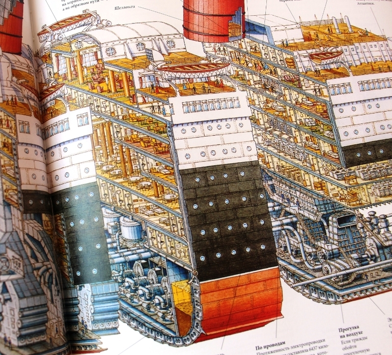 А в этой книге можно детально рассмотреть каждый закуток рыбного траулера, станции лондонского метро или линии по сбору автомобилей на автозаводе. Присмотритесь: танк или корабль не просто разрезан на половинки, а нашинкован вдоль и поперек, чтобы можно было рассмотреть действительно каждый закуток.