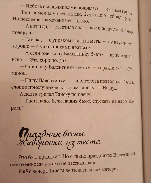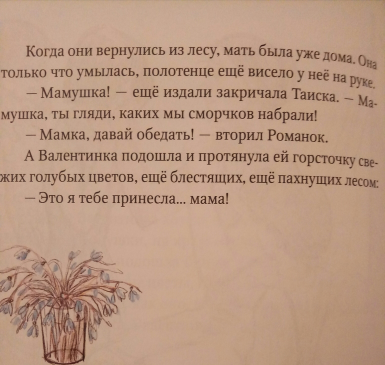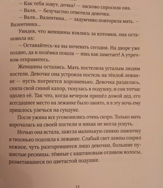 Вале уже давно все равно. Все равно, где она и что она. Она умерла в тот момент, когда на маму с братишкой упала бомба. Дальше - не она. Просто тело, существующее само по себе. Ей что бы привыкнуть к "маме" Даше, Таське, Груше и Ромчику приходится почти переродится, начать жизнь снова. Стать иной. Я видела, как она менялась. Я плакала от этого.