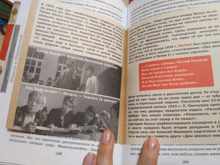 О самом издании. Из плюсов- цветные вставки с небольшими историческими справками и о времени и о самой ШКИД, и даже о фильме. Из минусов- бумага просвечивает и опечатки.