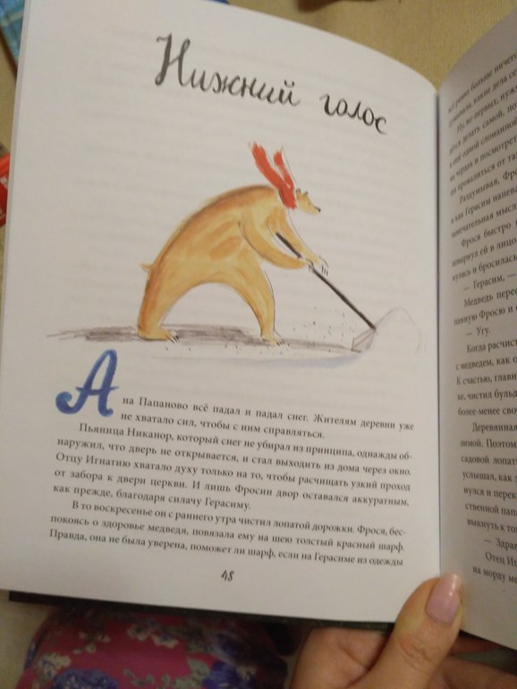 Я как всегда, сначала заказываю, а потом читаю отзывы. Отзывы смутили. Но стоила недорого, поэтому не так страшно было. Но знаете что? А мне понравилось. Книга не толстая, читается одним махом. И очень весело. Жанр я бы охарактеризовала, как "социальная сказка". Социальная, потому что действие происходит в обычной глухой деревне, и жители там большие. Сказочность сюжету добавляет говорящий медведь Герасим. Ну и Курица по имени Курица.