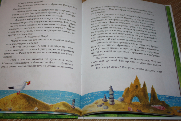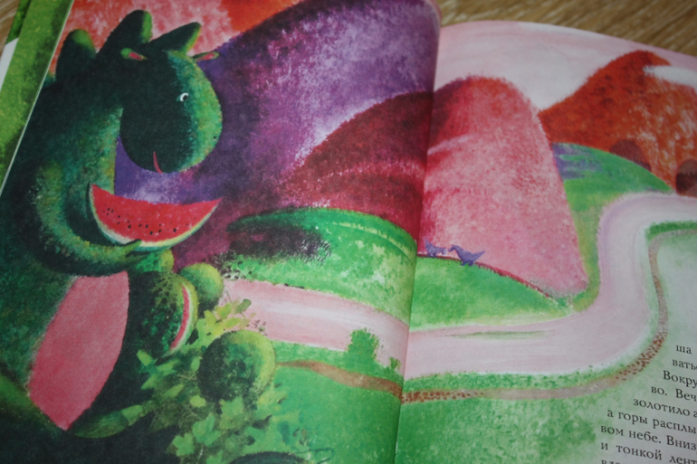 Пусть время арбузов уже прошло, пусть скоро выпадет снег, но такую добрую книгу можно читать в любое время года. Я не знаю, понравится ли книга всем так же сильно, как нам. Может она нам попала в нужное время, под нужное настроение, но мы в восторге. Повествование динамичное, очень доброе и какое-то трепетное, но при этом не слащавое и наивное. Какой же он милый, это дракончик!