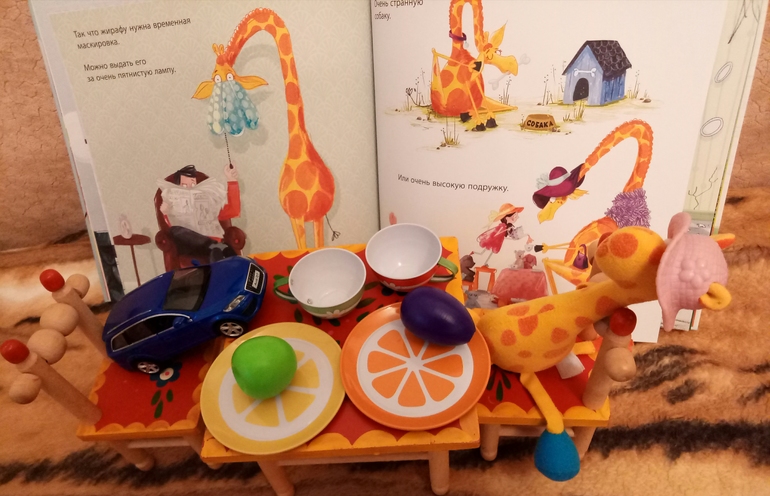 И жираф для такой радужной книги у нас нашелся соответствующий, с цветными копытами)