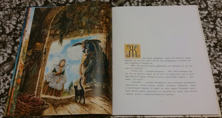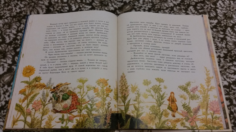 начало в книге мне понравилось, хорошо написано. Потом мой маленький книжный вандал увидел новинку и пришлось прятать, пока не остались от ядюймовочки рожки да ножки :) Иллюстрации хороши, такие нежные.