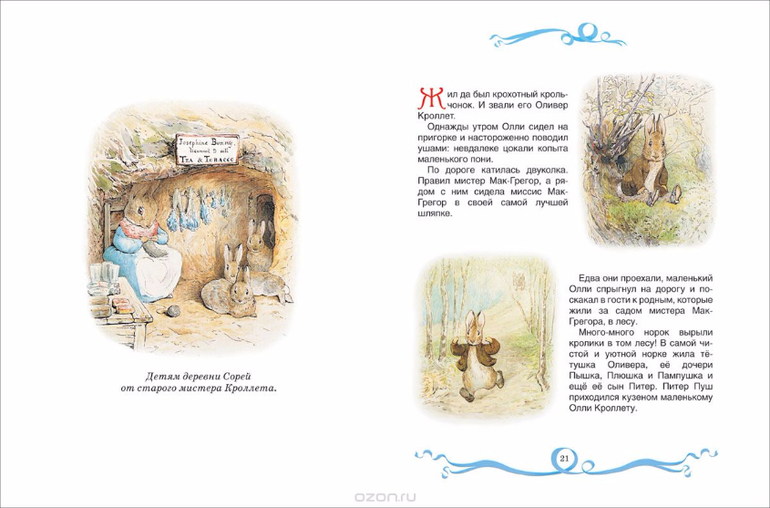 Сказки английской писательницы Беатрис Поттер (1866 - 1943) о кролике Питере, котенке Томе, ежихе миссис Туфф и других зверушках созданы больше ста лет назад и давно считаются классикой детской литературы. Нежные акварельные иллюстрации автора, тонкий английский юмор, простые милые сюжеты, уютная атмосфера - все это делает сказки Б. Поттер особенно запоминающимися.