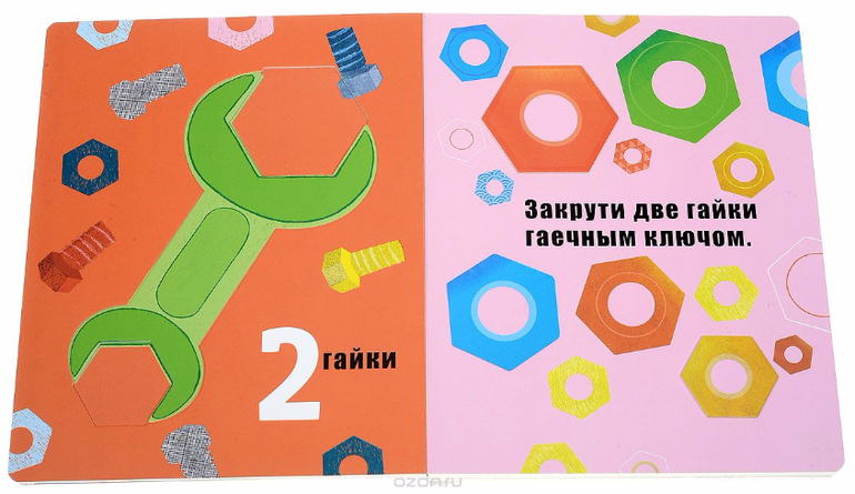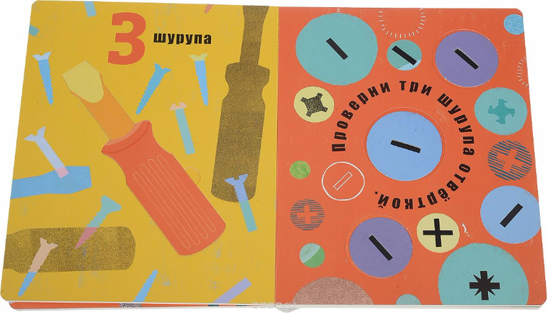 В этой книжке миллион идей для малыша! Не нужно задумываться, чем заняться с ребенком в свободное время, внутри - 5 инструментов, с которыми ваш маленький помощник сможет творить и делать поделки: забивать картонные гвозди, закручивать гайки и пользоваться отвёрткой. Здесь все, как в настоящей мастерской!