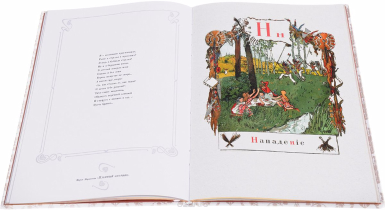 Изданная впервые в Петербурге в 1904 году, "Азбука" Александра Бенуа стала предвестницей удивительного расцвета русской иллюстрированной детской книги в наступавшем столетии. В самом деле, в XIX веке подобных книжек для детей у нас не было. Среди множества издававшихся до неё азбук с картинками (а это была традиционная форма первоначального учебника грамоты), в том числе уже и цветных, "Азбуку в картинах" Александра Бенуа выделяла новая и гораздо более серьёзная постановка творческой задачи.
