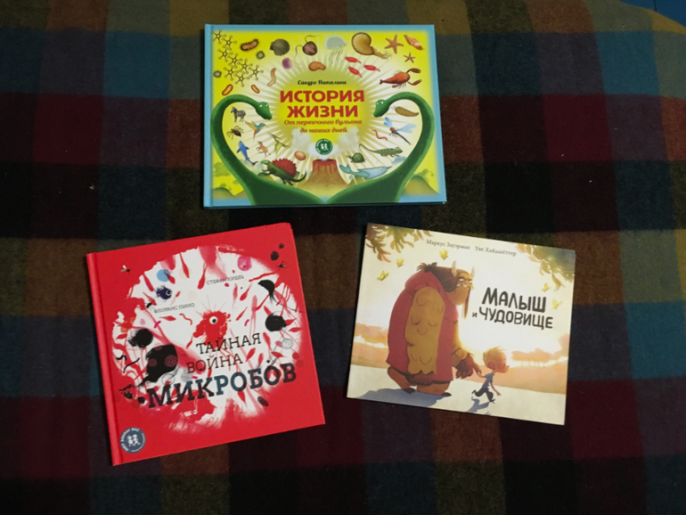 Ну что сказать - не приемлю всякого рода нечесть и мистификации. Считаю участие такого рода персонажей засорением младенческих мозгов, которые благодатней было бы засорить чем-нибудь ещё, проверенным временем.. но здесь пришлось смириться - запретный плод сладок, как известно... Малыш и чудовище, точнее их получасовое изучение позволили мне окучить парочку издательств, а у Тайной войны микробов Тити безжалостно покусал обложку, поэтому пришлось ее приобрести. Я с удовольствием почитаю эту книгу и старшим предложу) они интересуются. Все коротко и очень доступно для обывательского сознания. История жизни великолепна, спасибо Алёне, что показала ее.. поплакалась, что проворонила Прятки Тинки и Тимки...придётся теперь за ними охотиться. Энциклопедии на 6 лет от Пешком в историю брать не стала ... ну слишком много у нас книг на этот возраст - и все о том же.