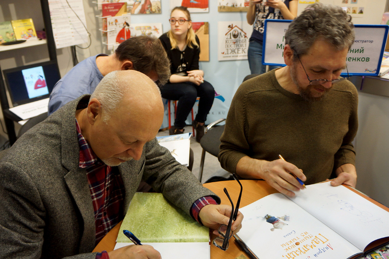 Игорь Олейников был на выставке долго. И у Вита Новы на автограф-сессии, и на презентации дниги в детской зоне (мимо пробегала, не вникала), и просто по выставке гулял.