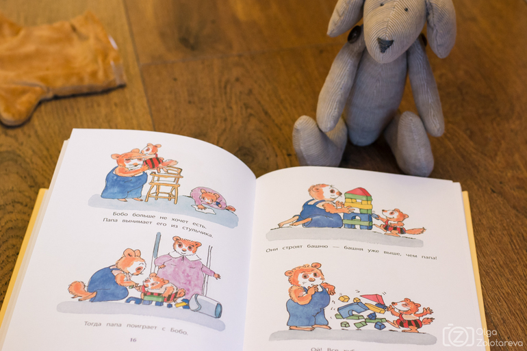 Где-то в 1,5 мес мы купили Приключения Бобо. И, опять же, по отзывам мне казалось, что надо было покупать раньше, в год и три где-то. На деле оказалось, что полтора года - самый подходящий возраст для понимания этой книги моим ребёнком. Читаем по две-три истории за раз, только последнюю главу про день рождения читали всего раз восемь в совокупности. Другие книги серии брать не планирую.