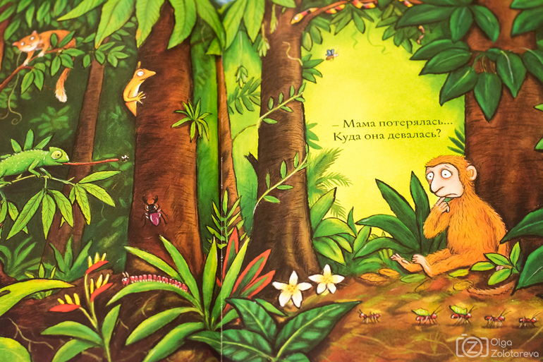 И вторая из зарубежки - это всем известная Хочу к маме. Очень красивая книга, особенно мною любим разворот в начале, где обезьянка объявляет о пропаже мамы. Книгу эту мы читаем с определенной периодичностью уже полгода, и хоть я написала о ней в посте про книги 1,2-1,5, я понимаю сейчас, что предложила я её рано. Около двух было бы в самый раз. Я даже подумываю отложить её на месяца четыре и проверить, но похоже, не будет уже той прелести новизны.