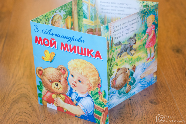 Мой мишка Александровой был выбран мною в варианте ультраяркой раскладушки. Читана-перечитана несчётное количество раз. Пожалуй, это главный наш стих в описываемом возрасте и чуть старше.