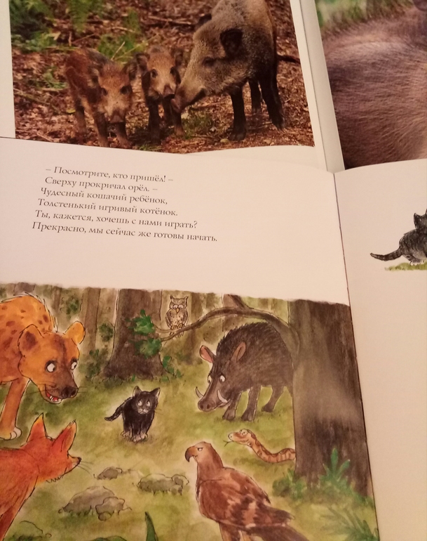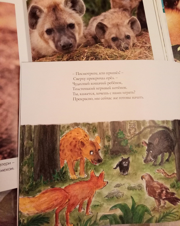 А вообще благодаря этой книжке у ребенка проснулся интерес к зверям, он всех их перечисляет, называет правильно, только про котенка говорит кошачий ребенок)