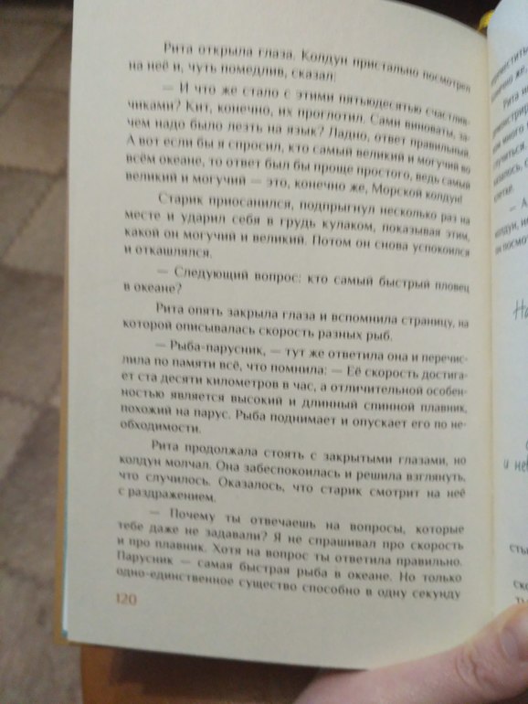 . Это основное. Но попутно и семейные проблемы ( Рита старшая в семье и должна всегда помогать маме с младшими. А хочется ли это девочке-подростку? Но как только Русалка уносит её младшего брата, не задумываясь направляется на поиски его), и экология, и красивейшие описания подводного мира, в которые незатейливо вплетены научные знания. Даже мне захотелось заглянуть в энциклопедию и изучить вопрос внимательнее. Посмотреть как выглядят те или иные морские жители.