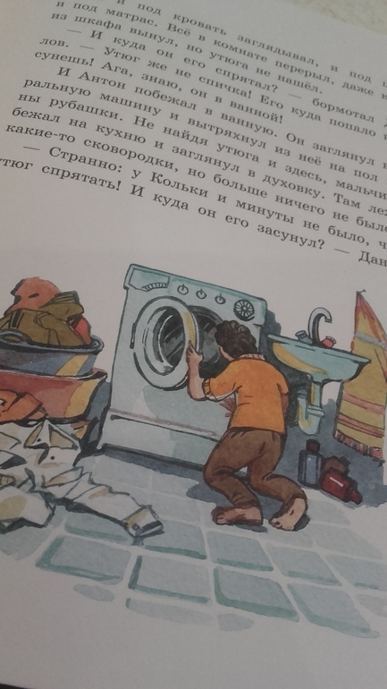В первом "Сыщики" двое друзей играли в сыщиков, один из них спрялат утюг, второй перерыл всю квартиру, потом к нему присоединились вернувшиеся родители, в итоге мама нашла его в супе )))) надеюсь это не будет руководством к действию ))