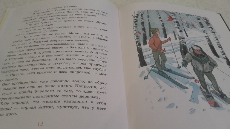 Во втором рассказе "Хитрый маневр" мальчики хотели сократить путь по лыжной трассе, а в итоге заблудились и вышли на тоже место на трассе, смешно и поучительно))