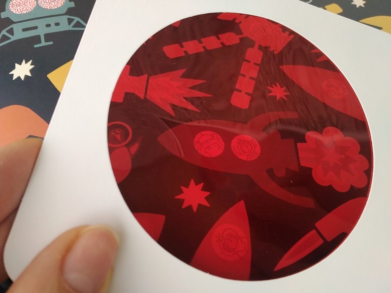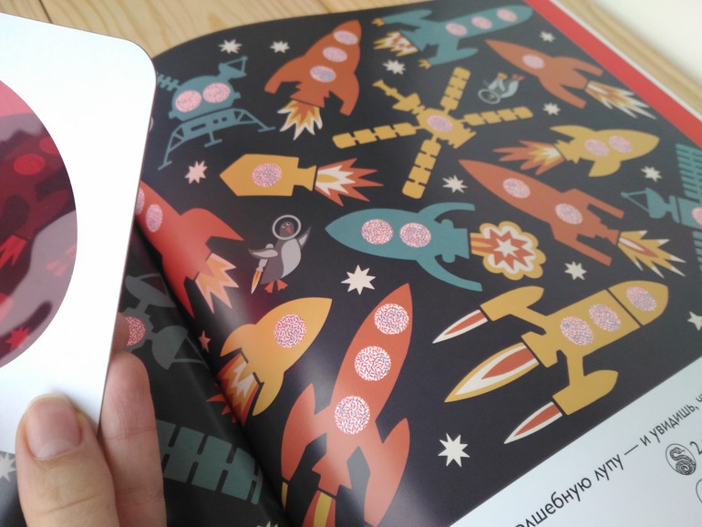 Стоит наложить на них специальную лупу с красной пластиковой линзой, идущую в комплекте с книгой, как иллюстрация тут же преобразится и мы обнаружим на ней кое-кого ещё: